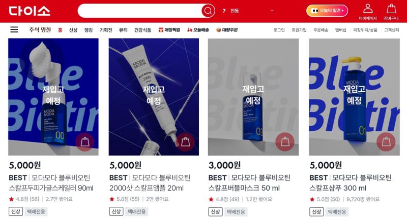 [CMN] 모다모다(대표 배형진)가 다이소 전용으로 선보인 ‘블루비오틴 스칼프 라인’이 연일 화제를 모으고 있다. 두피도 치아처럼 양치하듯 관리한다는 ‘두피가글’ 키워드가 소비자들의 호기심을 자극하며 다이소 인기템으로 자리잡는 분위기다.