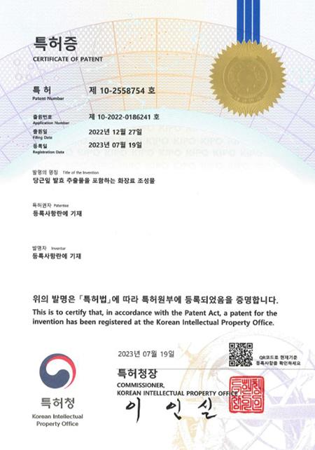 또한 원물인 당근잎의 경우 기존에 활용되던 당근이 아닌 당근잎 등 버려지던 부위의 효능을 밝혀냄으로써 천연물의 업사이클링이라는 새로운 가치를 만들어 냈다.