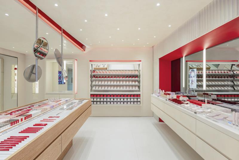 매장 내부는 뉴트럴 스킨 컬러를 다양한 소재로 믹스해 단조로움을 피하고, 브랜드의 키 컬러인 레드는 ‘빛’으로 재해석해 천장과 가구 틈에서 은은하게 새어 나오는 포인트로 활용, 매장 내 제품을 더욱 돋보이게 하는 브랜드의 아이덴티티를 반영했다.