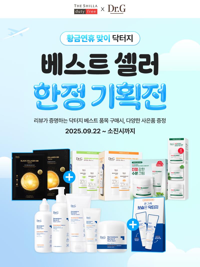 이번 프로모션은 닥터지 베스트 제품을 구매하는 고객에게 본품을 추가 증정하는 행사로, 오는 28일까지 일주일간 신라인터넷면세점에서 진행된다. 닥터지는 황금연휴를 맞아 신라인터넷면세점을 찾는 내외국인 고객들에게 제품 체험 기회를 확대하고, 풍성한 혜택을 제공하고자 이번 이벤트를 기획했다.