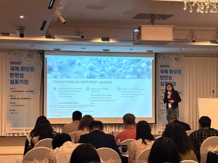 SCCS(유럽소비자안전과학위원회)를 비롯해 글로벌 기업과 학계의 저명한 전문가 12명이 참여했으며, 150여 명의 업계 관계자가 참석해 높은 관심을 보였다. 조신행 대한화장품산업연구원 원장 [사진 제공=대한화장품산업연구원] 조신행 원장은 환영사를 통해 “지난해 우리나라 화장품 산업은 사상 최대 수출 실적을 기록할 만큼 빠르게 변화하는 구제와 정책 속에서 이번 심포지엄이 안전성 평가 기준과 정책 방향을 공유하는 뜻깊은 자리가 되길 바란다”고 말했다. Dr. CAROLINE BASSONI (COSMED) [사진 제공=대한화장품산업연구원]첫째 날인 24일은 글로벌 규제와 안전성 평가를 주제로 한 다양한 발표가 이어졌다. 대한화장품산업연구원 이정표 실장과 한양대학교 배옥남 교수는 세계 주요 시장의 규제 개요와 국내 안전성 평가 현황을 소개하며 한국 화장품 산업이 직면한 과제를 제시했다. Dr.TED XING (L’Oreal) [사진 제공=대한화장품산업연구원]또한, 유럽의 최신 규제 동향과 자외선 차단제 제조업체를 위한 미국 FDA GMP 심사 전략, 그리고 최신 성분 예측 시스템을 활용한 안전성 평가 기업이 소개돼 과학적이고 선제적인 관리의 필요성이 부각됐다.