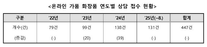 한국소비자원 온라인 가품 화장품 관련 소비자 상담 매년 증가