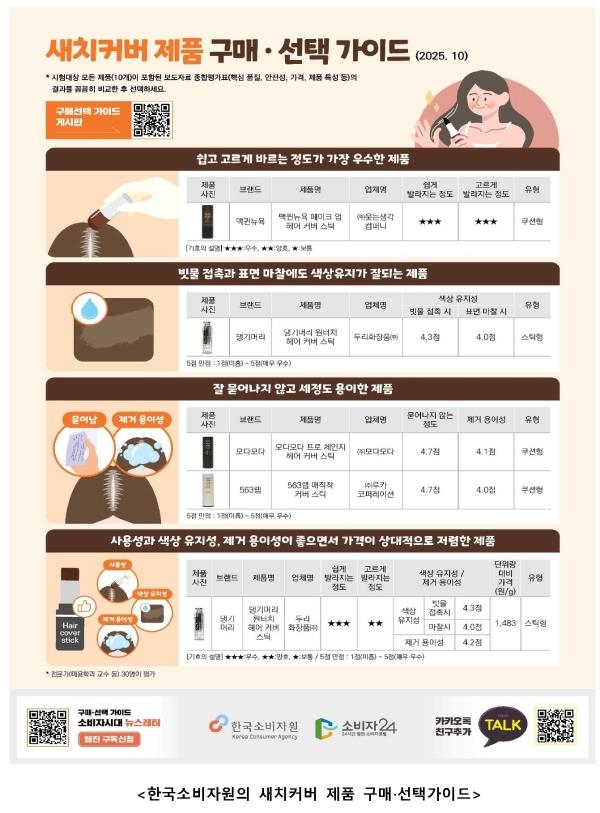 한국소비자원, 새치커버 10개 제품 품질‧안전성 시험‧평가