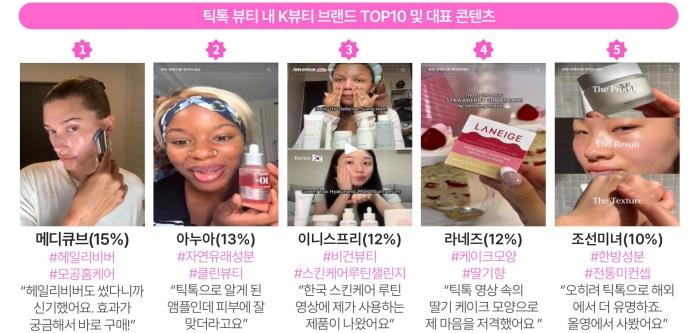 또한, 해외 셀럽이 직접 뷰티 제품을 사용하는 모습은 물론, 그들이 론칭한 브랜드가 관심을 끌고 있으며, 개성있는 스킨케어, 메이크업 방식이 눈길을 끌어 따라 해보고 싶은 모방 심리로 연결되고 있다. 아울러 단순 숏폼 콘텐츠 중심에서 제품을 소개하고 구매까지 연결되는 ‘틱톡샵’으로 확장되는 모습이 나타났다.