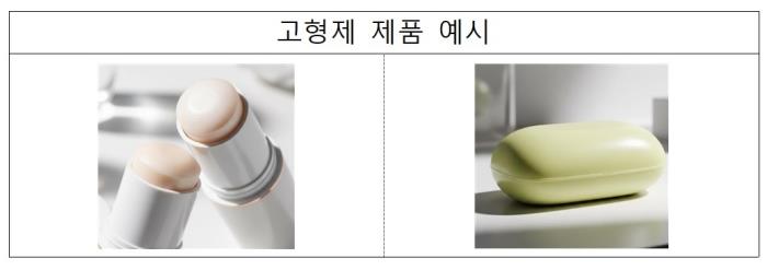개정안에서는 기존 화장품 제형(로션제, 액제, 크림제, 침적마스크제, 겔제, 에어로졸제, 분말제)의 정의와 미백‧주름개선에 도움을 주는 기능성화장품의 기준 및 시험방법에 ‘고형제’를 신설해 기능성화장품 심사 절차 없이 보고만으로 제품 출시가 가능하도록 했다.