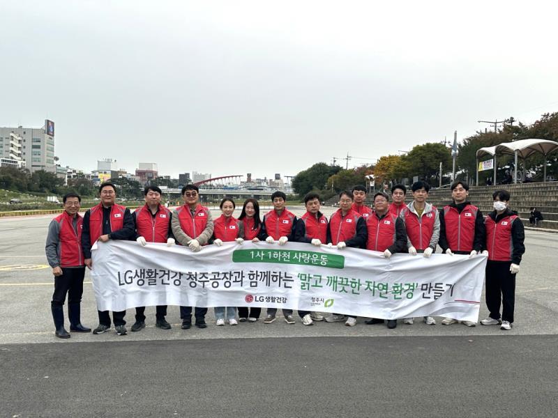 LG생활건강은 지역사회 사업장인 ‘청주공장’에서 올해부터 상·하반기 각 1회씩 ‘1사 1하천 사랑 운동’에 참여하고 있다. 청주공장이 담당하는 무심천은 청주의 역사·문화적 가치를 지닌 주요 하천으로, 시민들에게 휴식 공간을 제공하며 다양한 지역 행사가 열리는 장소다.