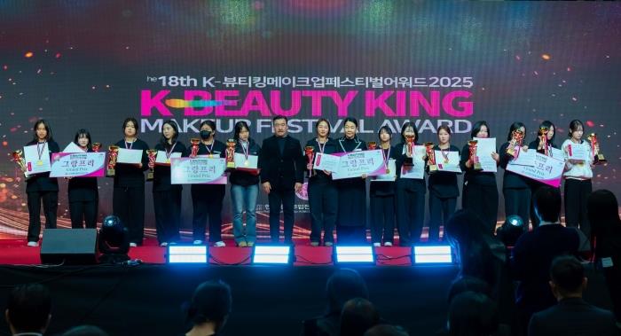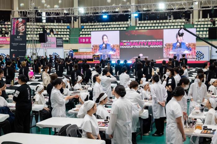 [CMN] (사)한국메이크업전문가직업교류협회(회장 안미려)가 주최하고 (사)한국뷰티스타일리스트직업기능협회가 주관한 ‘제18회 K-뷰티킹메이크업페스티벌어워즈 2025’가 지난 15일 용인시 명지대학교 체육관에서 열렸다.