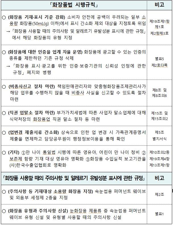이에 따라 외음부 세정제와 속눈썹용 퍼머넌트 웨이브 제품은 기재·표시 간소화 제외 대상으로 지정된다.