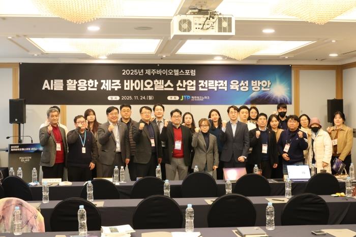 제주TP는 지난 24일 메종글래드 제주에서 ‘AI를 활용한 제주 바이오헬스 산업 전략적 육성 방안’을 주제로 ‘2025 제주바이오헬스포럼’을 개최했다.